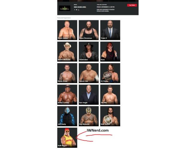 WWE is now advertising Hulk Hogan for the Crown Jewel event on their website. Here is a screenshot: