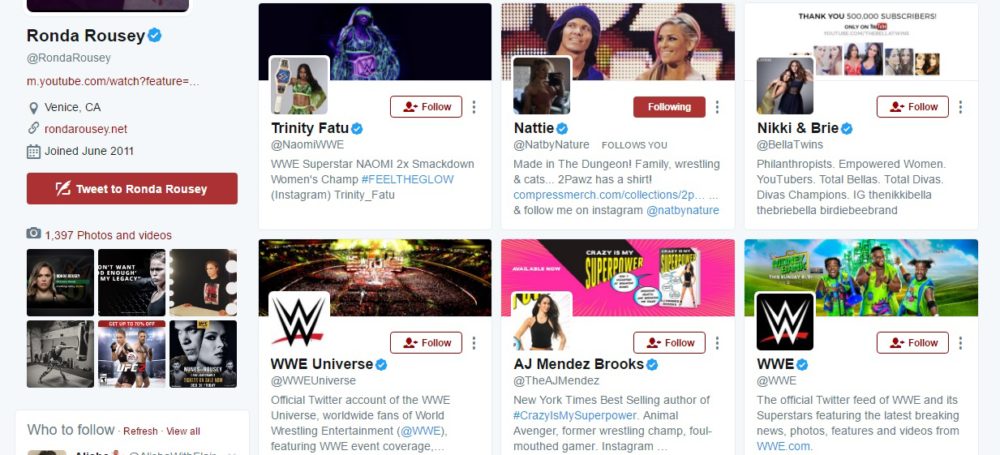 This is in grain of salt territory but a lot of fans have pointed out that Ronda has followed a lot of WWE related accounts as of late. This includes: @WWE, @WWEUniverse, @BellaTwins, @NaomiWWE and @NatByNature. This has led to fan speculation that she could be making an appearance on WWE television soon.